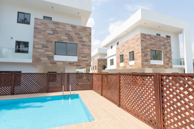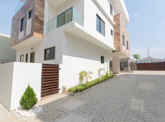 Odi’s Court is a gated community located in the Airport Residential area. It consists of six detached town houses, each with 4 bedrooms (plus 1 bedroom staff quarters).
